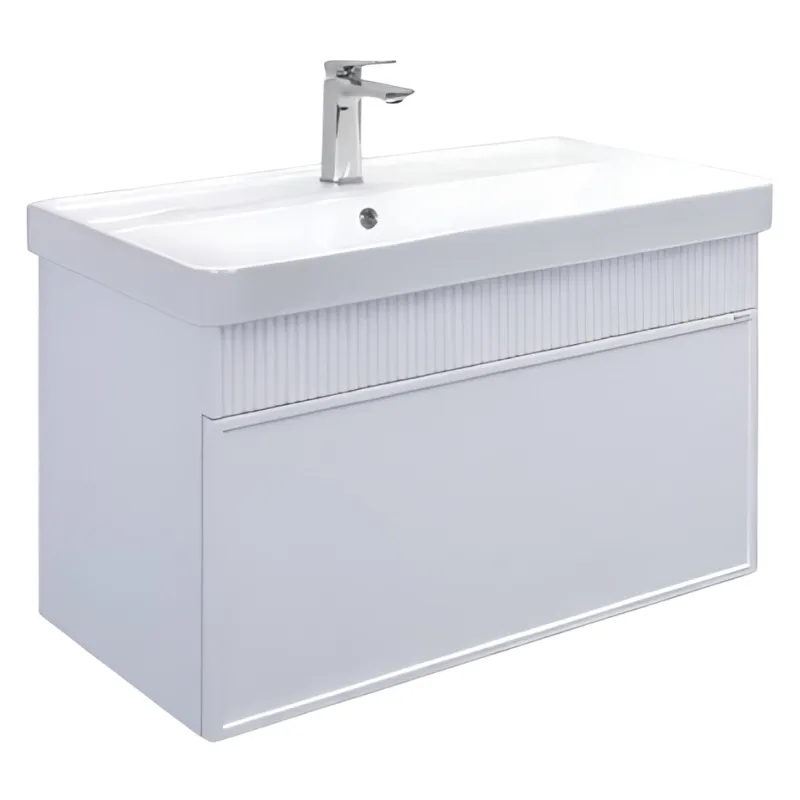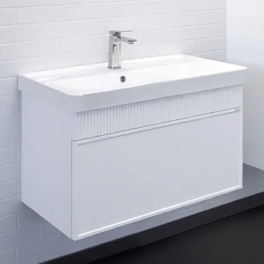 Модель выполнена в актуальном минималистичном стиле, который легко впишется как в современный, так и в классический интерьер. Компактная ширина 80 см делает тумбу оптимальным выбором для ванных комнат среднего размера, обеспечивая при этом достаточное пространство для хранения.