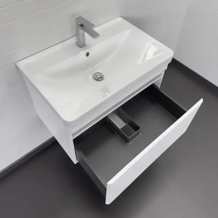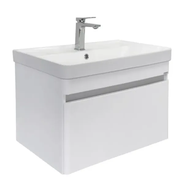 Модель выполнена в классическом белом цвете, который легко впишется в любой интерьер. Фасад и корпус изготовлены из влагостойкого МДФ, что гарантирует долговечность даже в условиях повышенной влажности. Прочная фарфоровая раковина прямоугольной формы не только выглядит эстетично, но и отличается высокой износостойкостью.