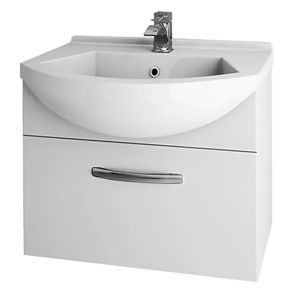 Тумба ALFA, 55 см, подвесная, 1 ящик, белый глянец