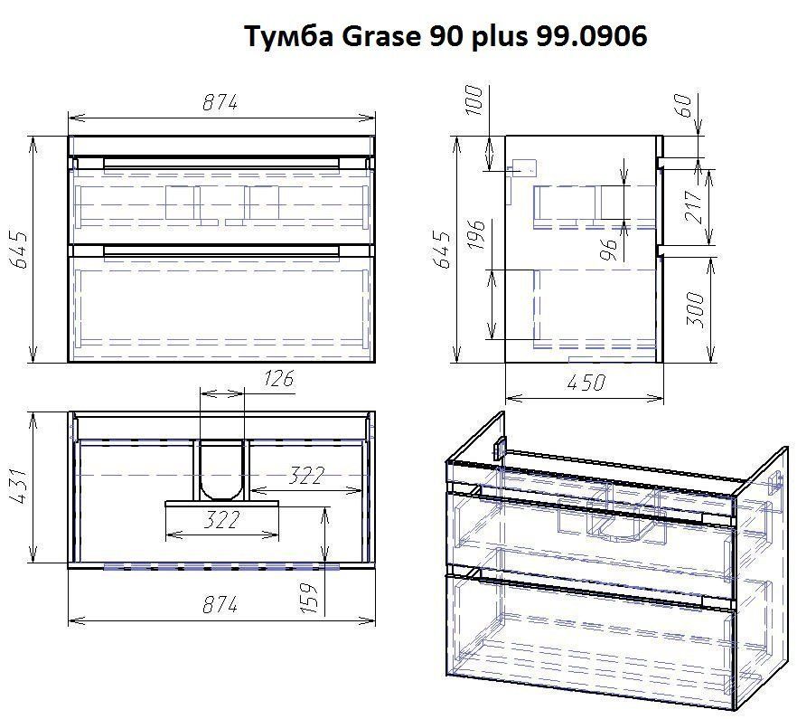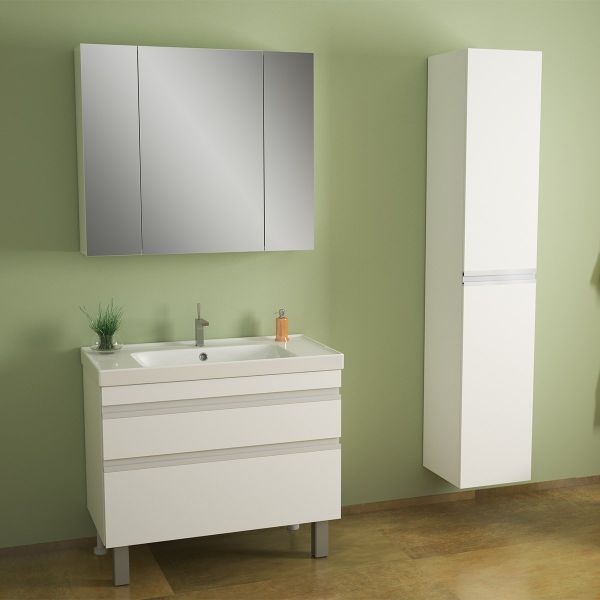Тумба GRACE PLUS, 90 см, подвесная/напольная, 2 ящика, с опорами, белый глянец