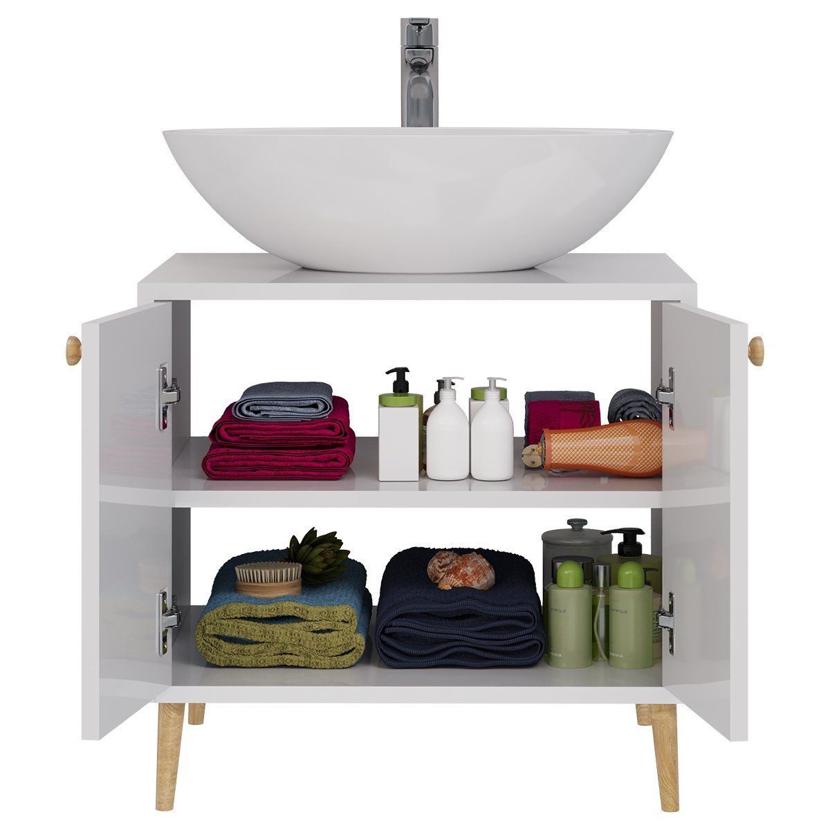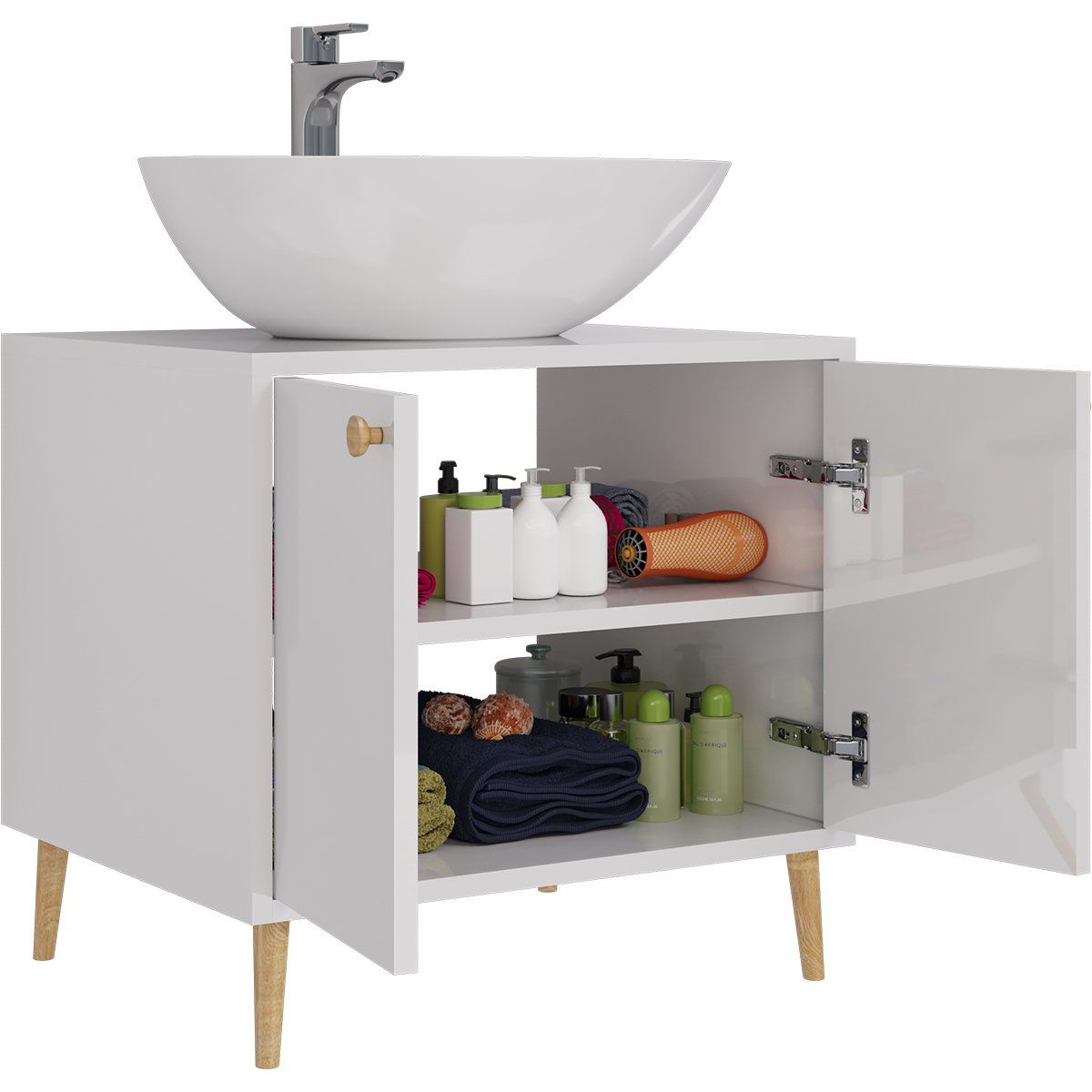 Тумба LUNO, 60 см, напольная, 2 дверцы, белый глянец, под умывальник Триумф