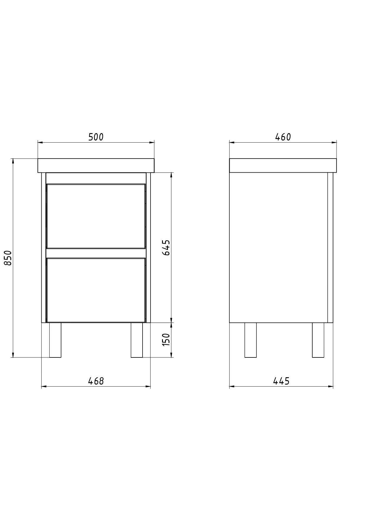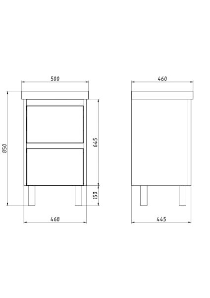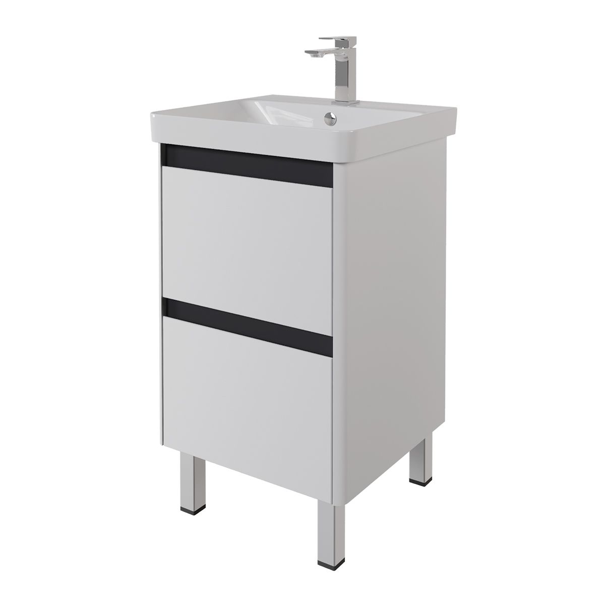 Тумба LUXURY PLUS, 50 см, подвесная/напольная, 2 ящика, с опорами, матовый белый, под умывальник Luxury