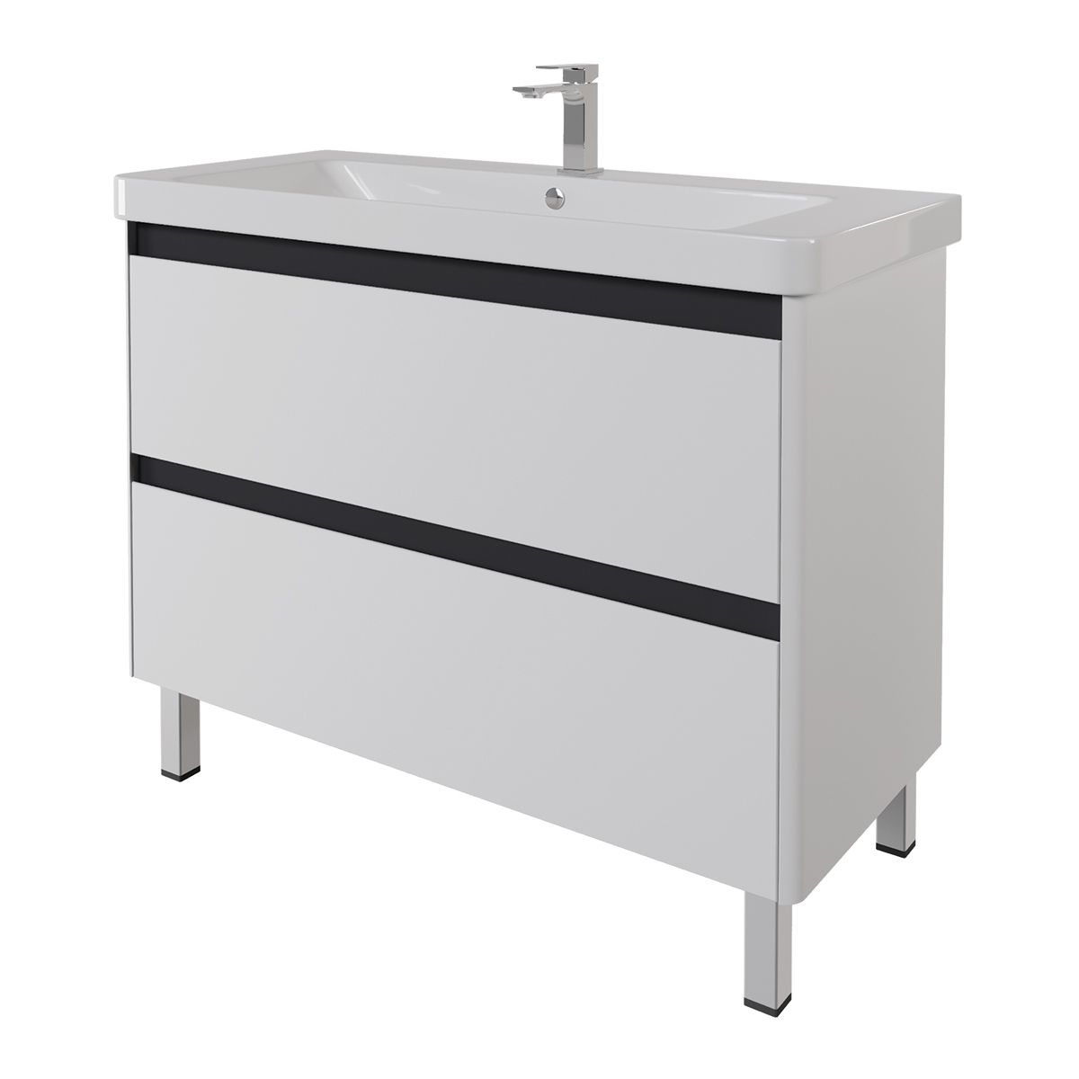 Тумба LUXURY PLUS, 105 см, подвесная/напольная, 2 ящика, с опорами, матовый белый, под умывальник Luxury