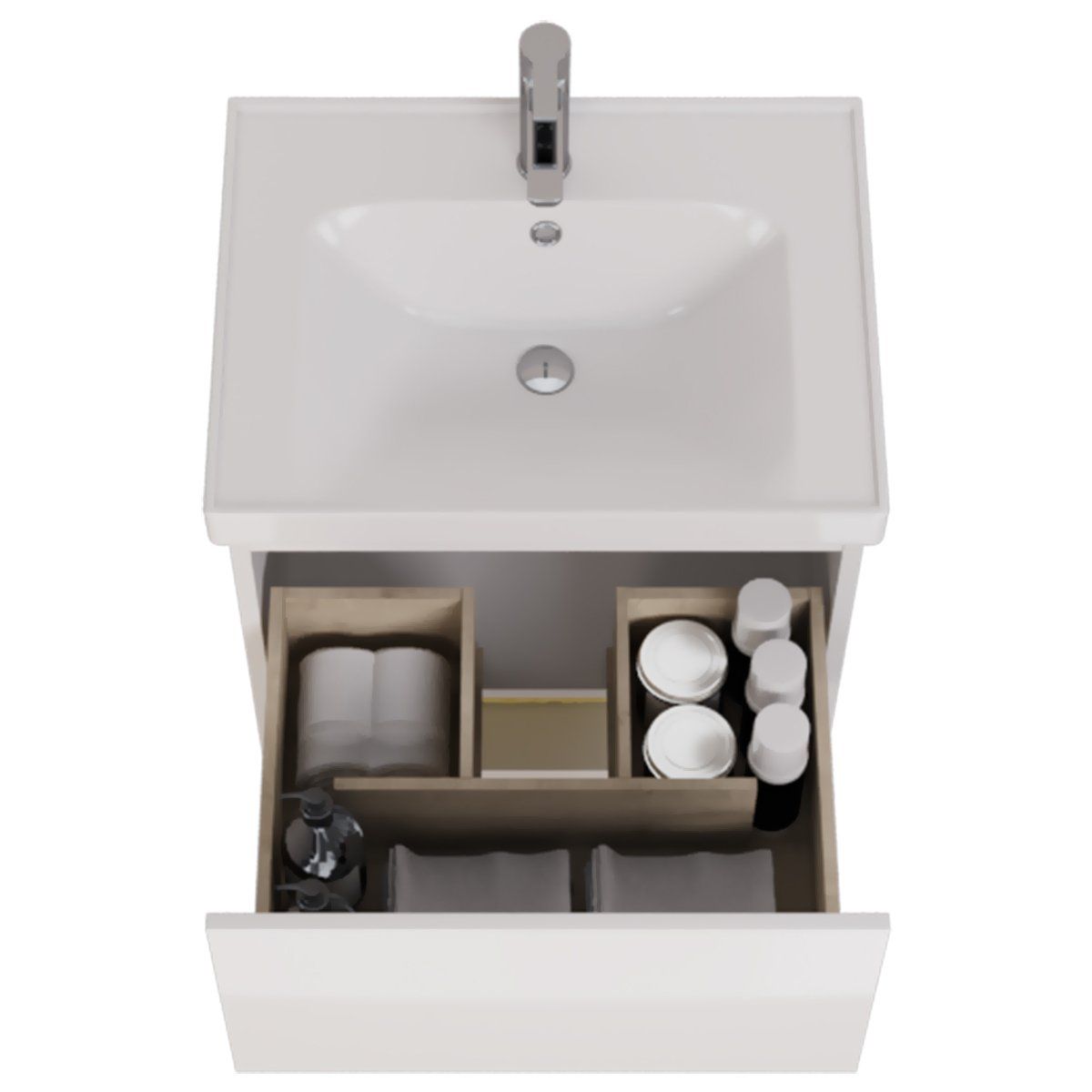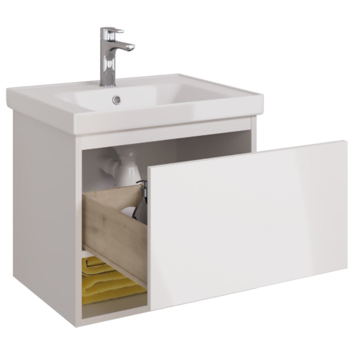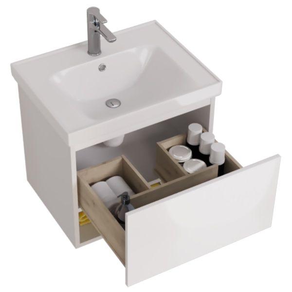 Тумба PERFECTO, 60 см, подвесная, 1 ящик, push-to-open, белый глянец