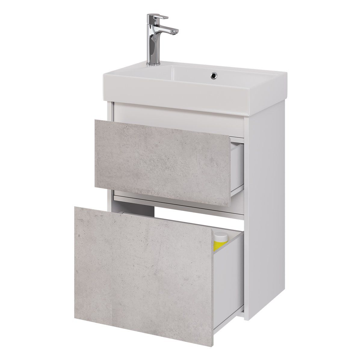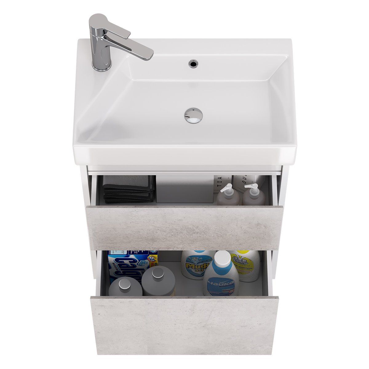 Тумба SLIM, 55 см, подвесная/напольная, 2 ящика, бетон/белый глянец