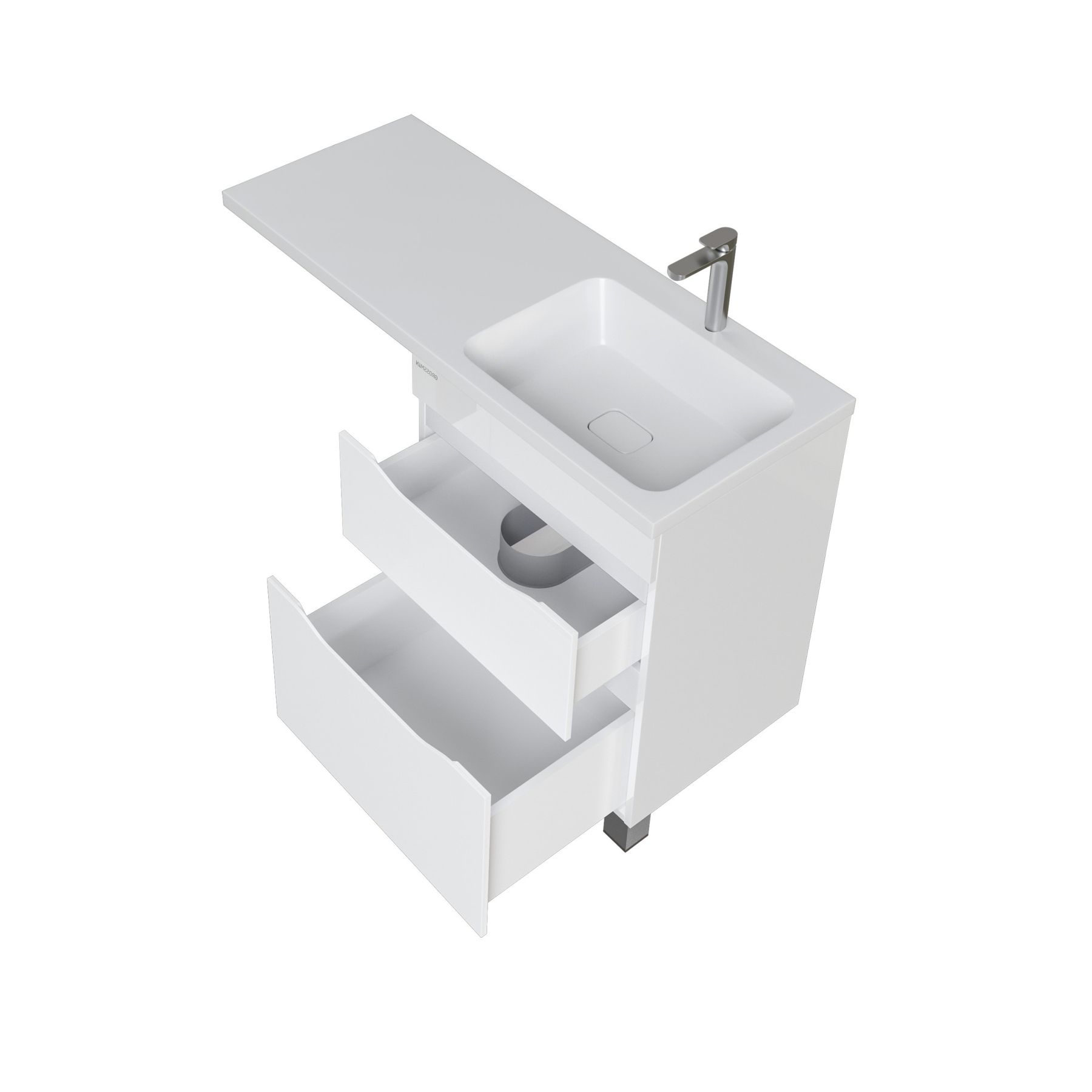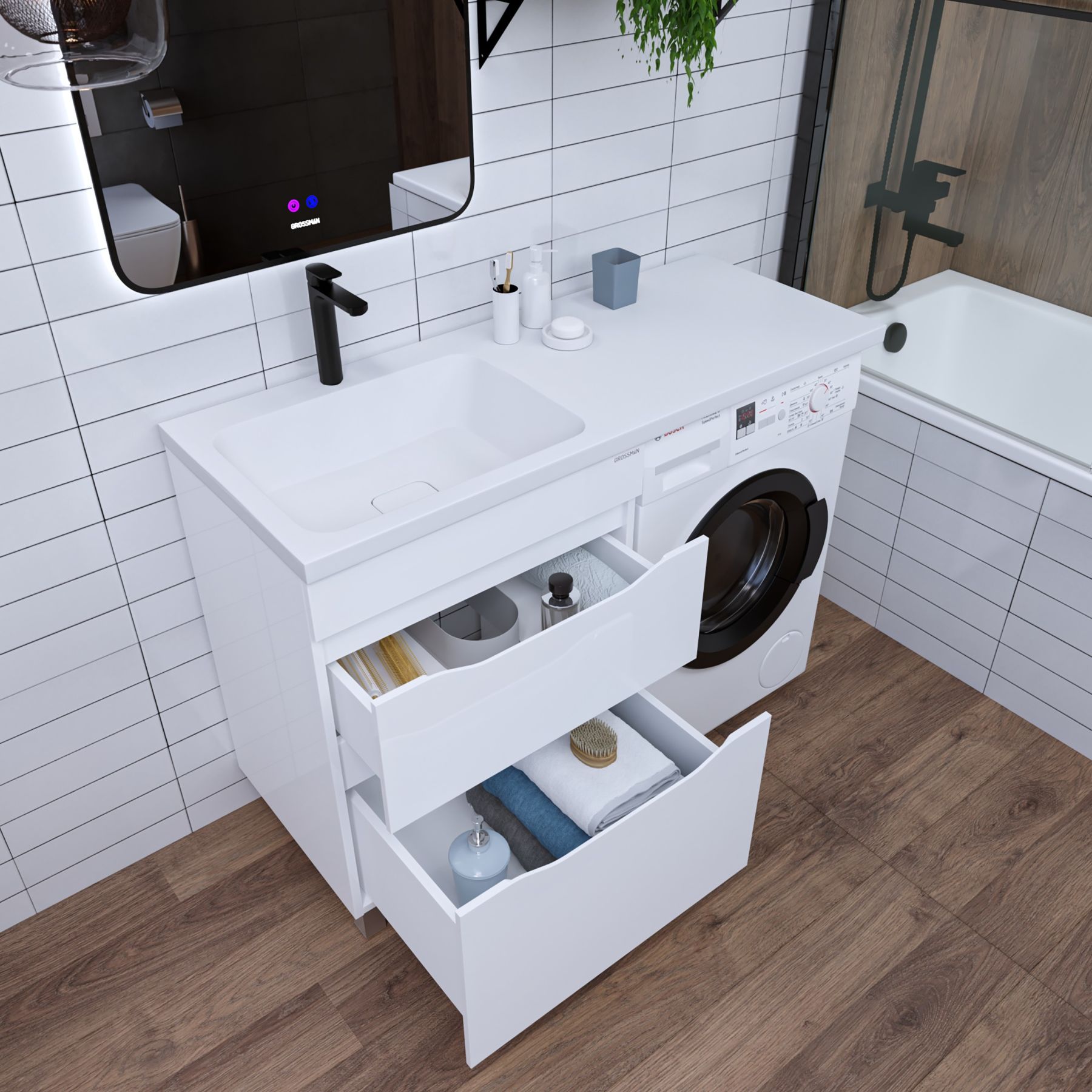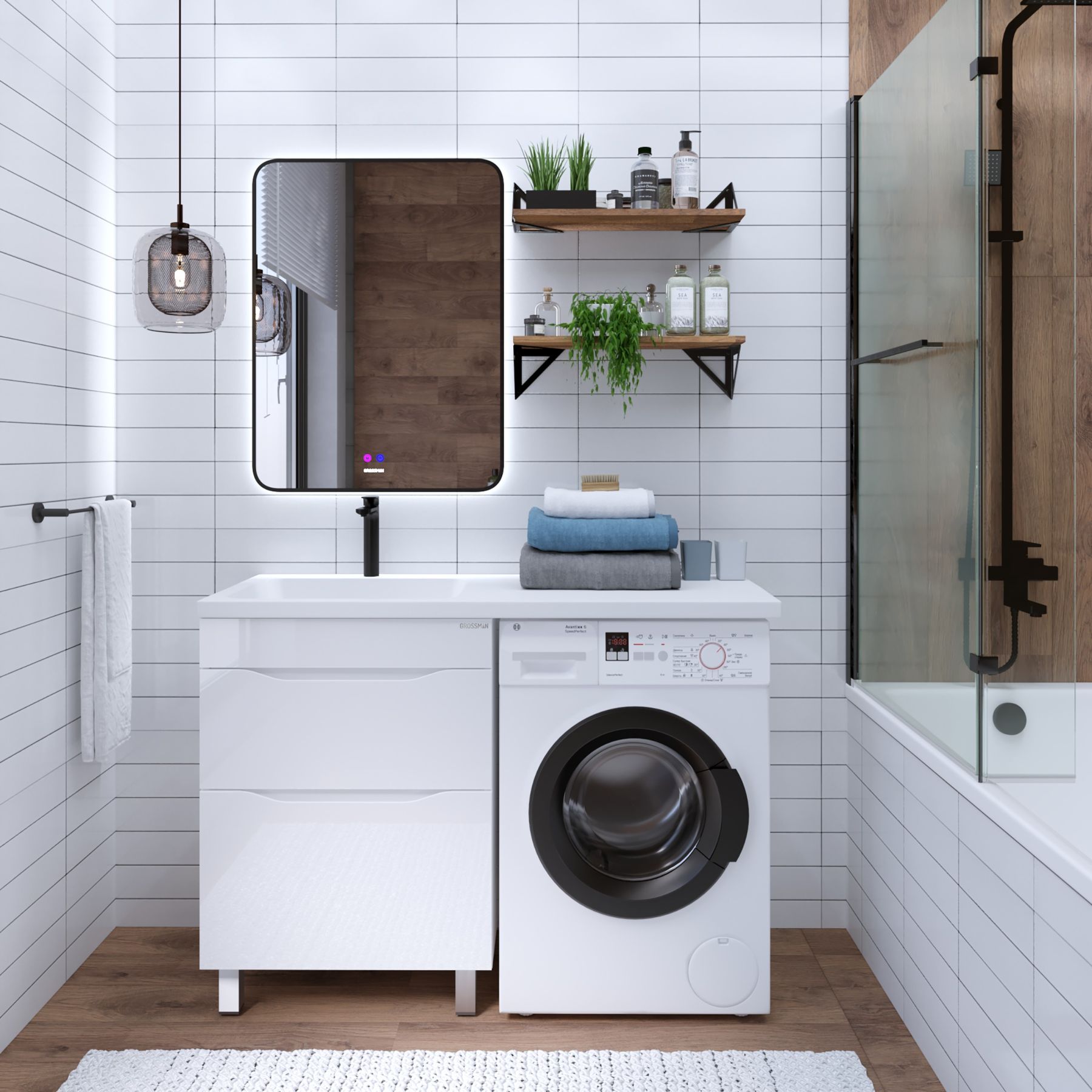 Тумба напольная под стиральную машину Вилар 60 см в белом глянцевом цвете, интегрированные ручки добавляют современный дизайн и строгий стиль. Тумба снабжена двумя ящиками, укомплектованными направляющими скрытого монтажа с системой плавного закрывания, и предназначенны для хранения различных предметов. Мебель выполнена из влагостойкого МДФ, покрытой белой глянцевой краской, устойчивой к перепадам температур и высокой влажности. Подходит к стиральной машине глубиной до 470 мм, шириной до 600 мм и высотой до 850 мм.