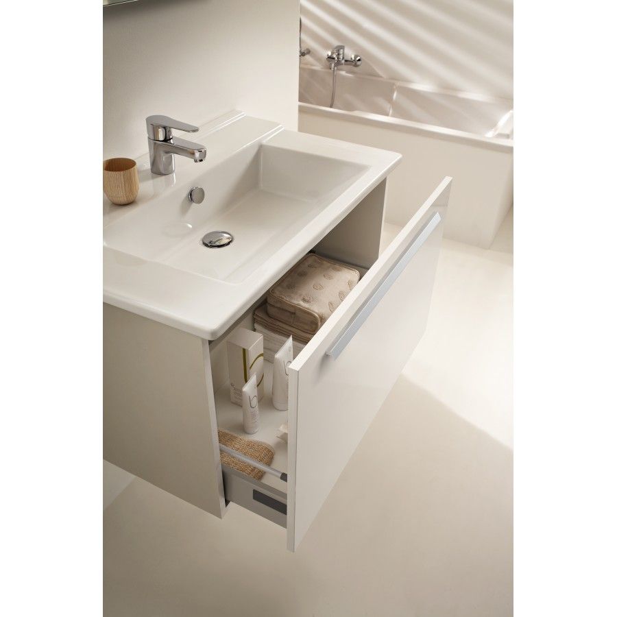 Тумба под раковину Jacob Delafon STRUKTURA EB1285-N18 Подвесная тумба под раковину Jacob Delafon Struktura 77 EB1285-N18 с 1 выдвижным ящиком. Тумба коллекции Struktura выполнена в строгом стиле с прямыми линиями и углами. Она сочетает в себе лаконичный дизайн и продуманную функциональность. Мебель этой серии отлично впишется в интерьер ванной комнаты в современном или хай-тек стиле.Габариты изделия: 77x56x47 см.