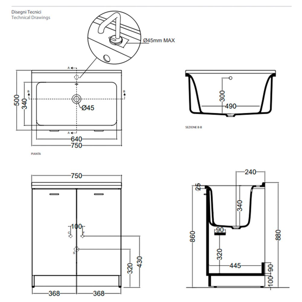 Тумба под раковину Kerasan Aquadom 75 9164k3*1 напольная белаяKerasan Aquadom 9164k3*0 Раковина хозяйственная с тумбой 750*500 мм: база под раковину + раковина без отверстия под смеситель, с одним намеченным (арт. 029301*0), белая + выпуск с сифоном 753501, цвет тумбы - белый матовый.
