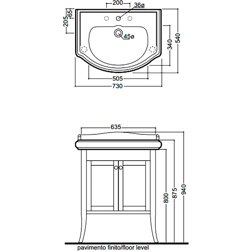 Тумба под раковину Kerasan Retro 734930 напольная белая купить
