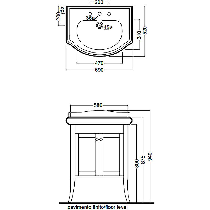В комплекте поставки:Тумба под раковину.