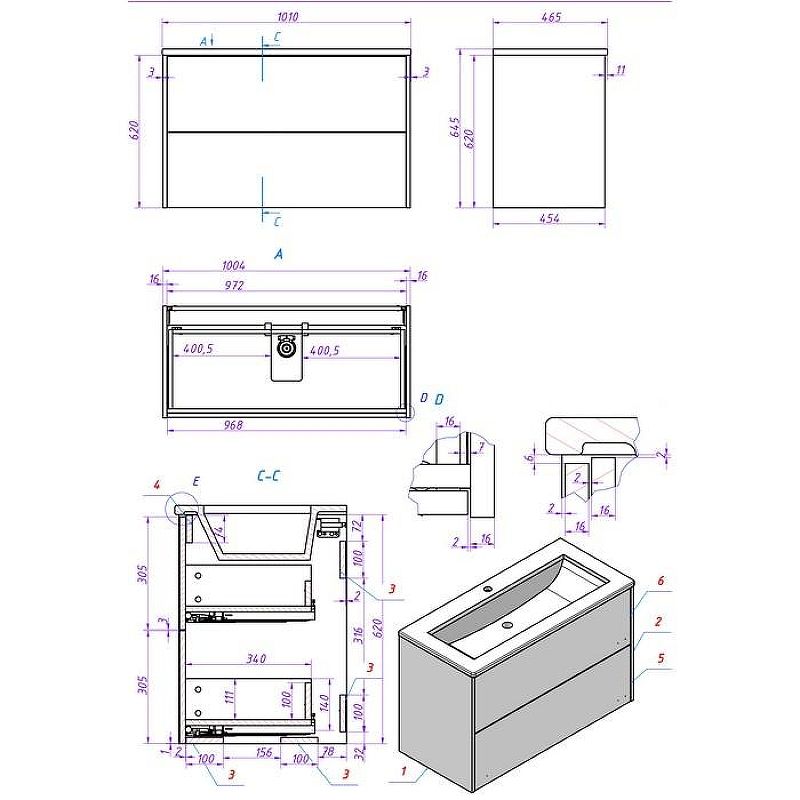 Габариты корпуса тумбы (ШхВхГ): 1004х620х454 мм.