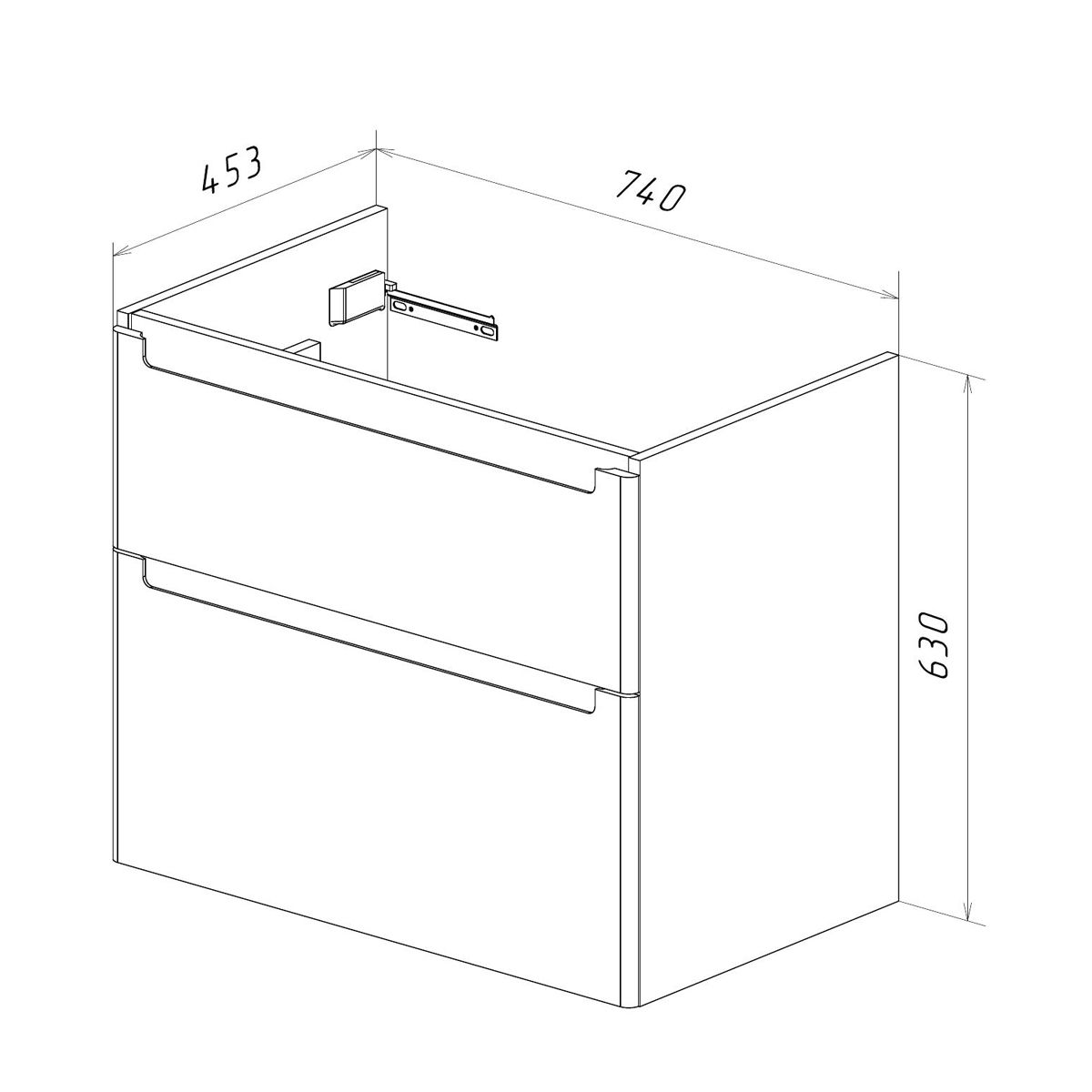 • Габариты без раковины (ШГВ): 740х453х630 мм;