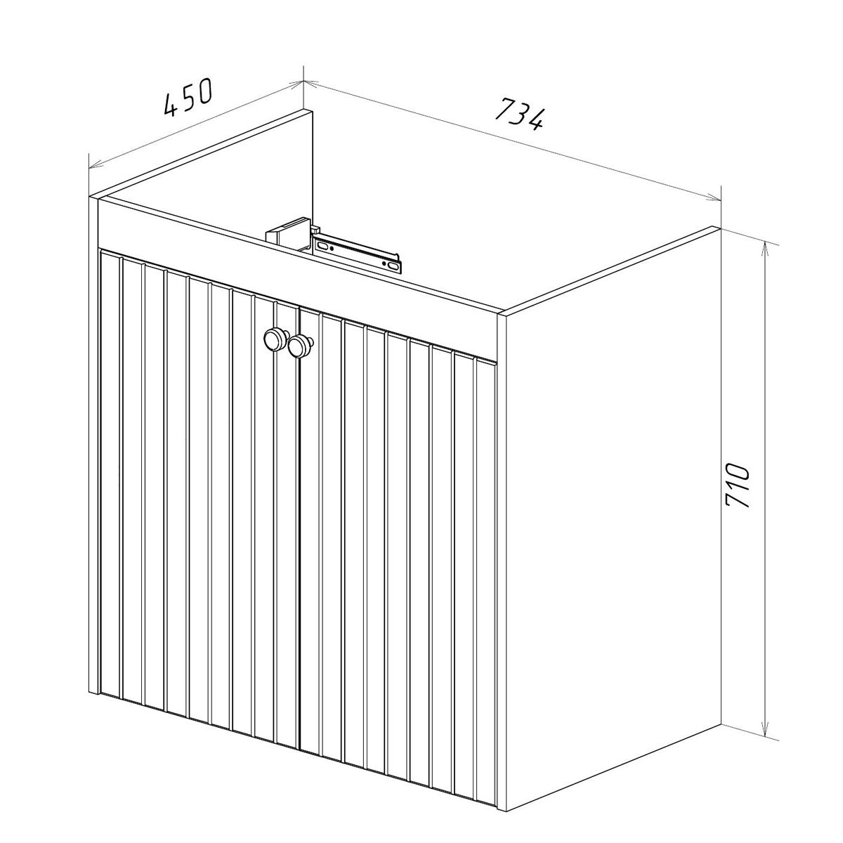 • Габариты без раковины (ШГВ): 734х450х710 мм;