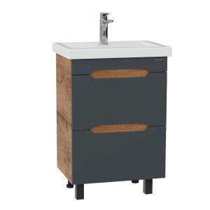 Тумба впишется в любой интерьер благодаря трендовому сочетанию матового графита и золотого дуба, а также поможет эффективно организовать пространство, что особенно важно в небольших ванных комнатах. В её конструкции предусмотрены два ящика, оснащенных направляющими полного выдвижения: нижний ящик подходит для хранения крупных предметов, а верхний, оборудованный практичной системой организации, вмещает мелкие аксессуары.