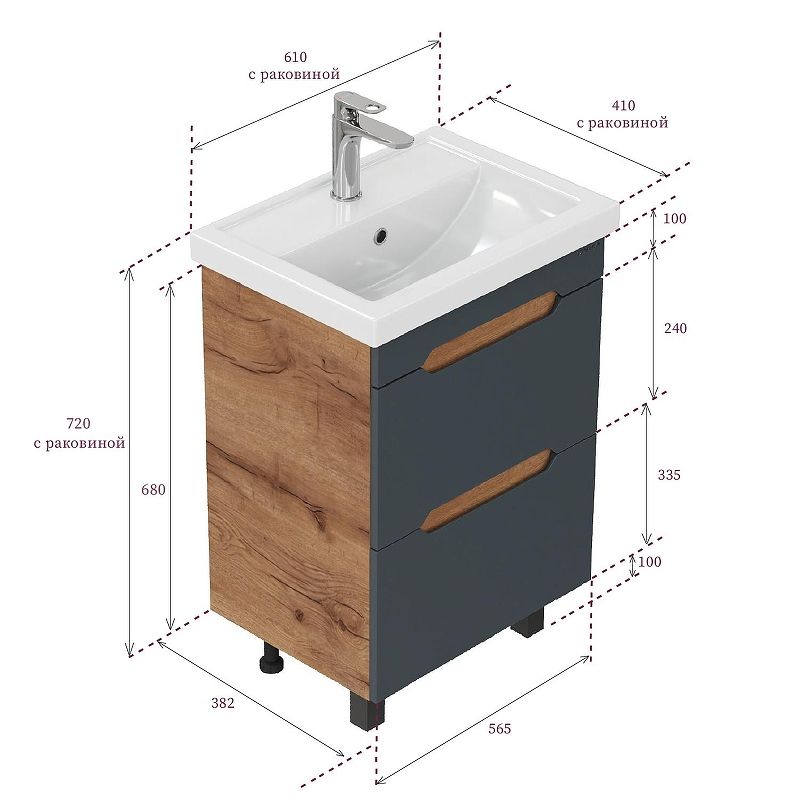 Тумба под раковину напольная Onika Айленд 106164 60 см графит/дуб крафт золотой купить