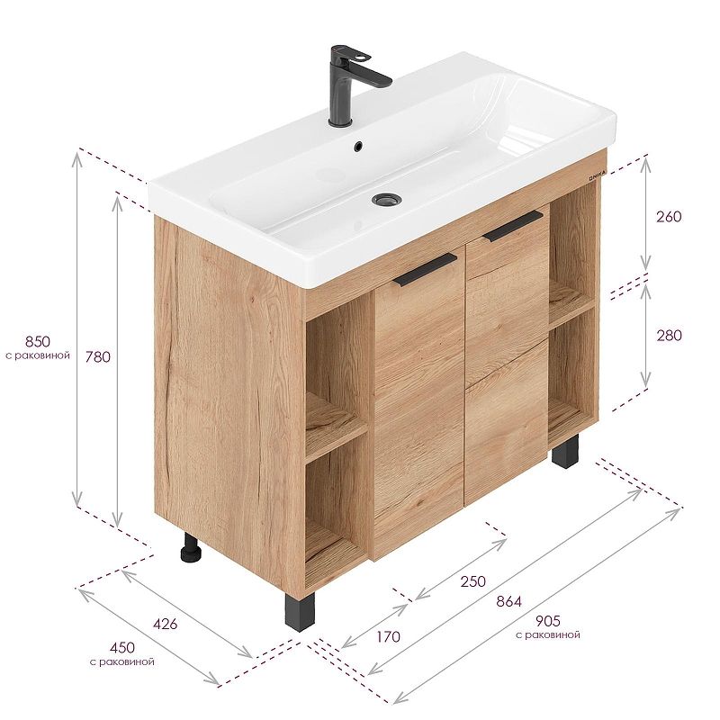 Тумба под раковину напольная Onika Легран 109031 90 см дуб галифакс купить