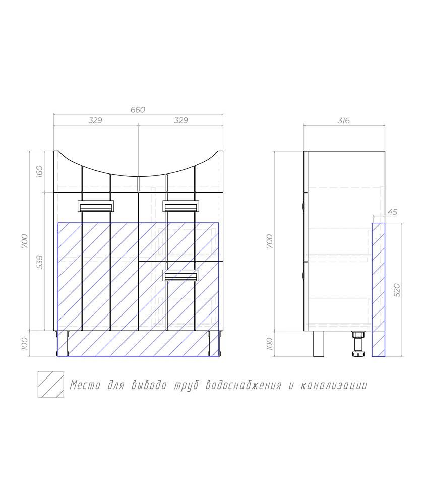 Тумба под раковину напольная Vigo Diana tn.DIA.BAL.70.1D.2Y 70 см белый