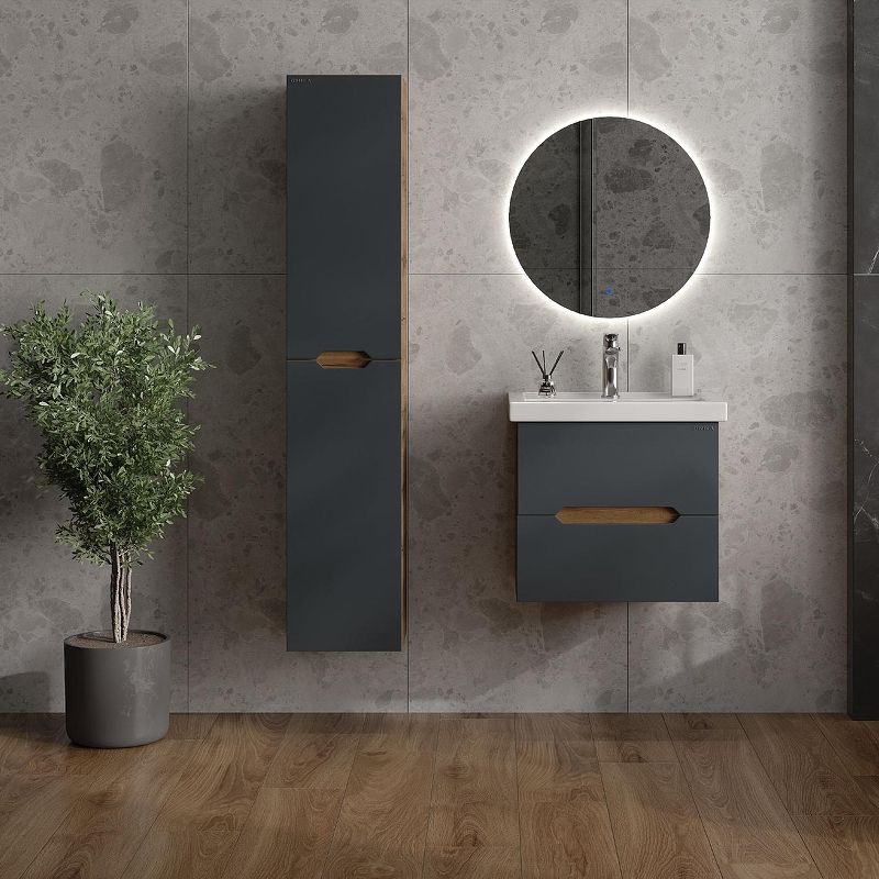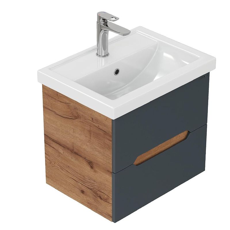 Подвесная тумба Onika Айленд 60 – это отличное решение для ванной комнаты, сочетающее стиль и практичность. Тумба впишется в любой интерьер благодаря трендовому сочетанию матового графита и золотого дуба, а также поможет эффективно организовать пространство, что особенно важно в небольших ванных комнатах.