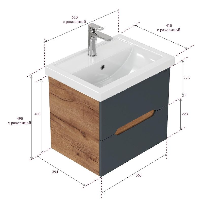Размеры тумбы без учета раковины 57х39х46 см.