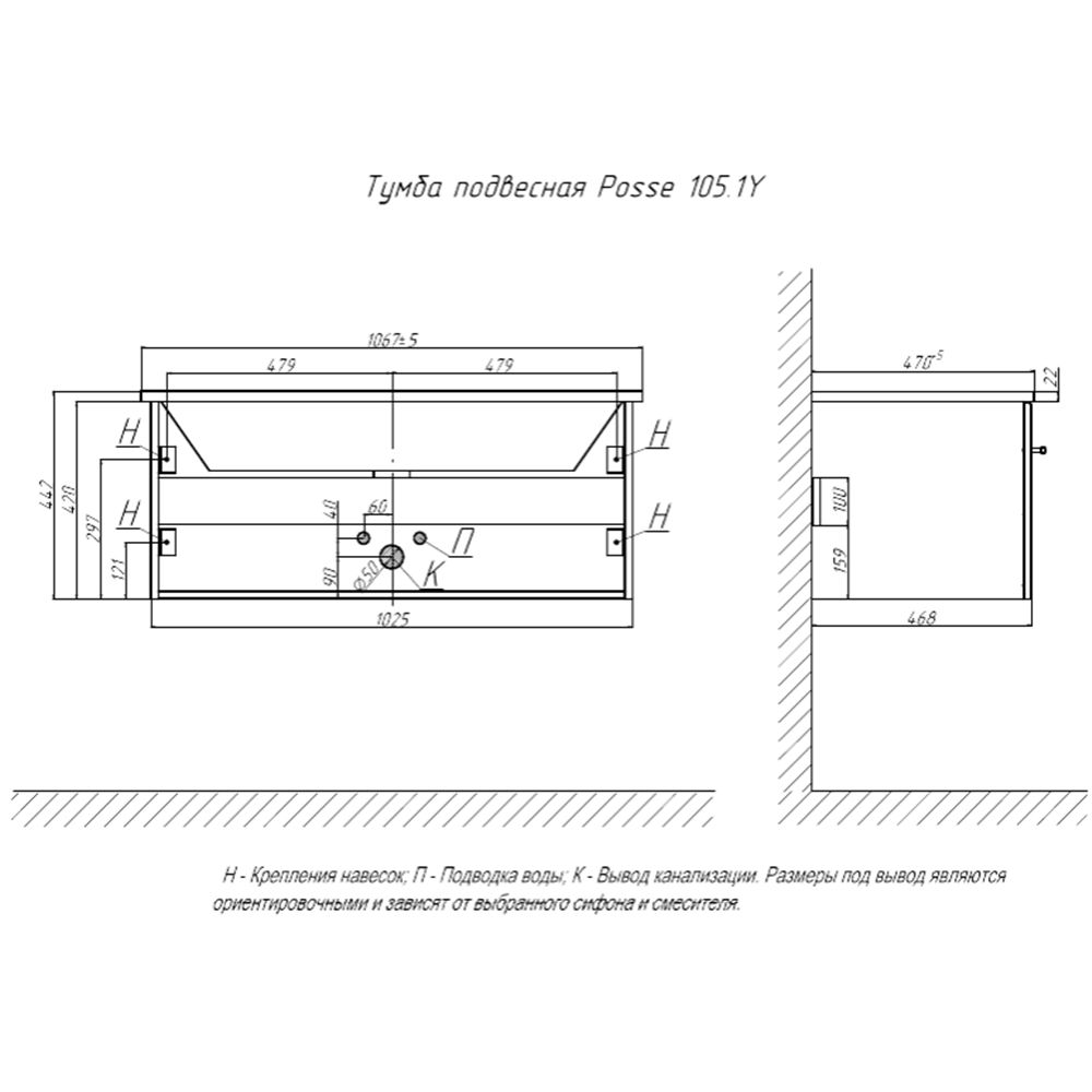 Тумба под раковину подвесная Velvex Posse tp.POS.OSK.105.1Y верде, 105 см