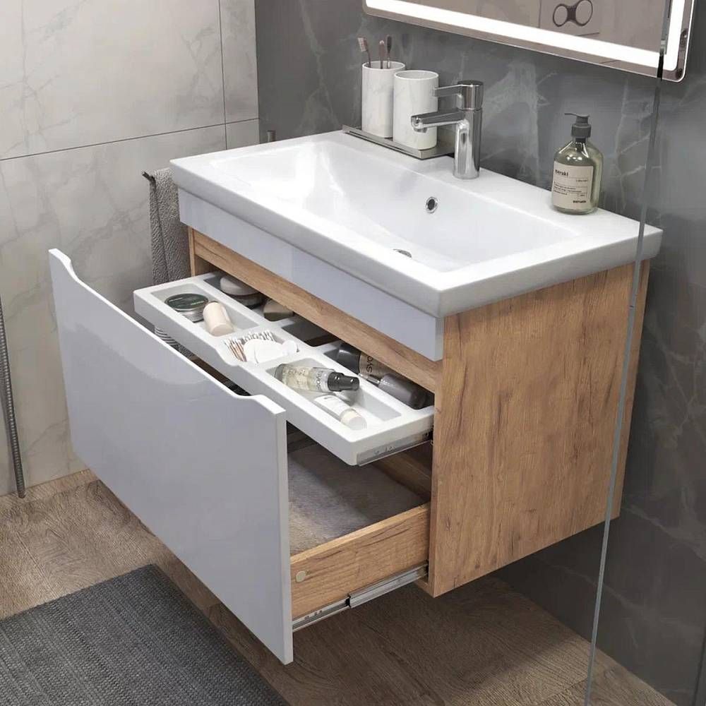 Тумба под раковину подвесная VIGO Grani 166 дуб золотой, 80 см. Гарантийный срок 2 года. Монтаж: подвесной. Доводчик: нет. Нажимной механизм: нет.
