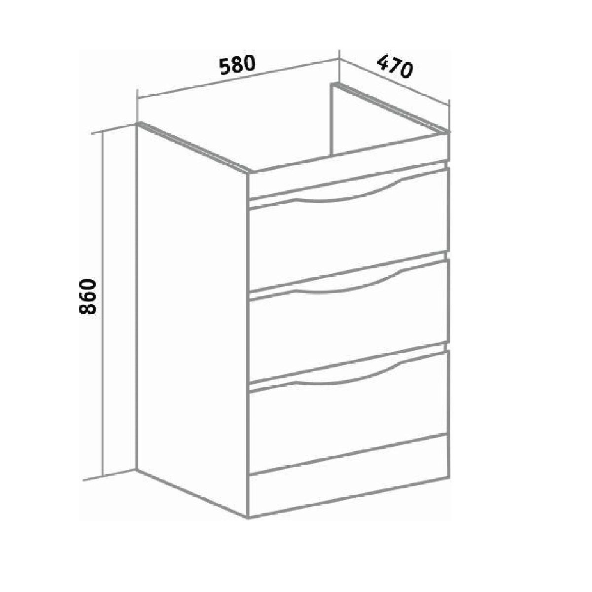Тумба под умывальник напольная с тремя выдвижными ящиками на шариковых направляющих скрытого монтажа с доводчиком. Устанавливается на 4-е пластиковые опоры, скрытые за нижней съемной фальшь-панелью. Комплект предусматривает установку стиральной машины под крылом умывальника слева от тумбы. Умывальник из литьевого мрамора "Gamma 120 лайт" устанавливается на тумбу и кронштейн.
