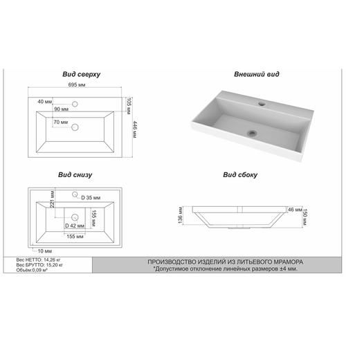 Тумба под раковину Stella Polar Рианна 70 напольная 2 ящика