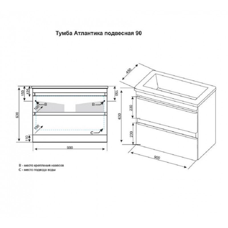 Тумба под раковину Style Line Атлантика 90 СС-00002209 купить