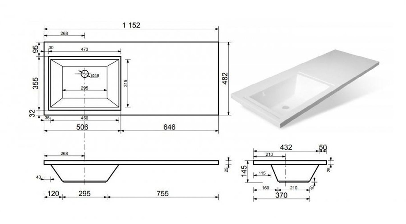 Тумба под раковину Style Line El Fante Даллас 115 Люкс Plus, 115 см, подвесная, 2 ящика, белый, СС-00000651Основные характеристики:Тумба под раковину для установки со стиральной машиной