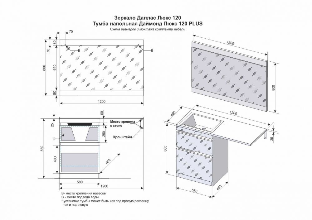 Тумба под раковину Style Line СС-00000560 Даймонд 120
