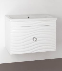 Тумба подвесная бренда "Style Line" коллекции "Вероника" с оригинальной 3D фрезеровкой фасада и доводчиками Hettich. Фурнитура - хром. Мягкие плавные линии необычной фрезеровки фасада создают оригинальные формы, способные украсить любой интерьер. Сборка изделия с помощью эксцентриковых стяжек Hafele; все материалы полностью влагостойкие.Боковины изделий в пленке в цвет фасадов. Данная тумба предусматривает открытую подводку воды