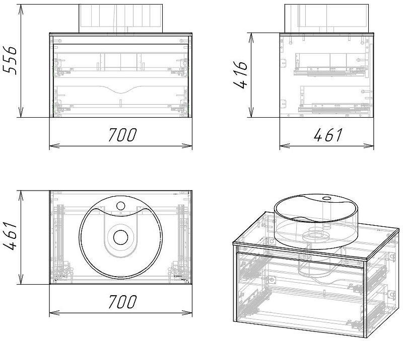 Габариты тумбы (ШxВxГ): 700x416x461 мм.