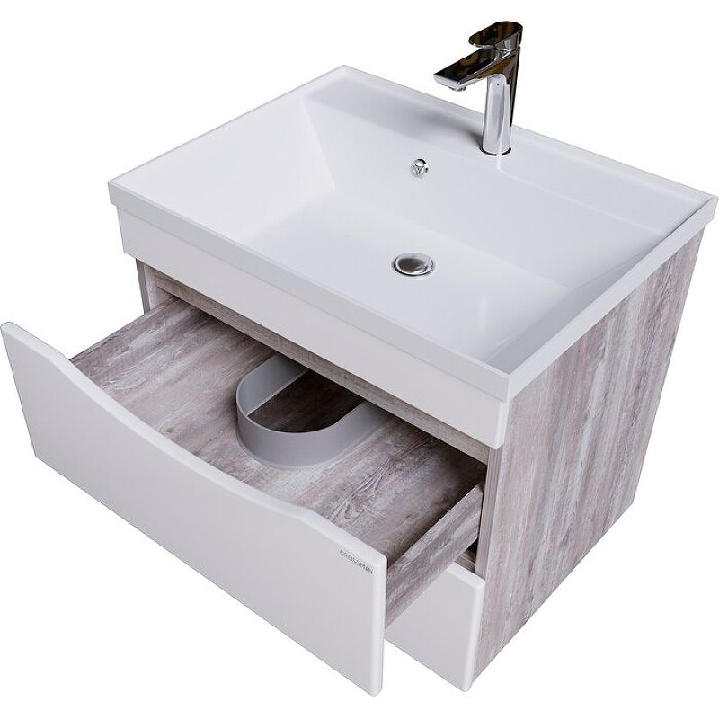 Тумба подвесная под раковину Grossman Талис 106010 60см бетон пайн/белый глянец