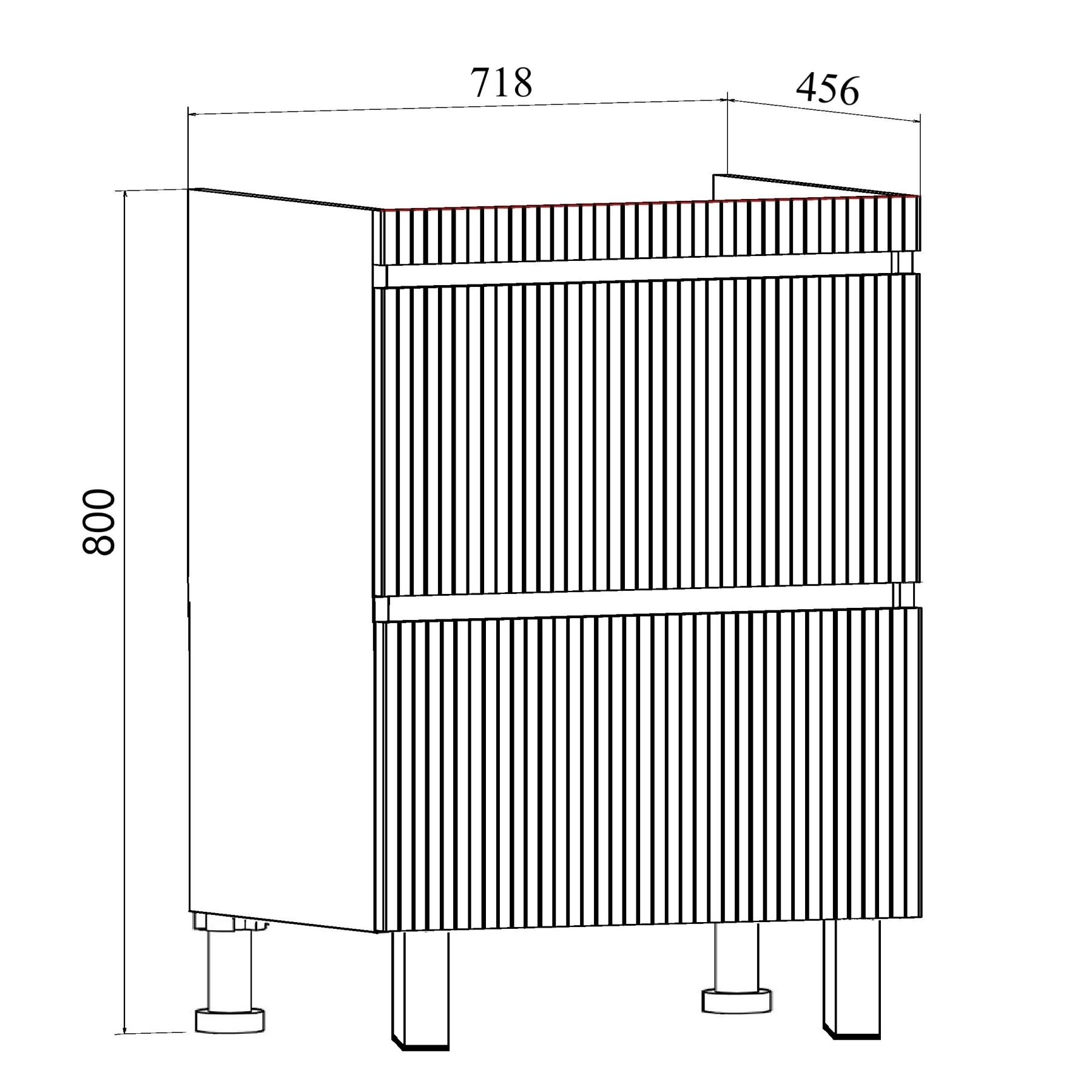 Тумба под раковину МОДЕНА (напольная) – это изысканность и утончённая роскошь в интерьере. Волнистые рифленые фасады визуально «оживляют» и «приводят в движение» всю обстановку комнаты, сохраняя при этом умиротворение и покой, превосходно сочетаются с классическим белым цветом корпуса. Цвет фасада также классический – белый глянец, идеально впишется в любой интерьер ванной комнаты. Тумба для ванной оснащена двумя выдвижными ящиками на шариковых направляющих, к тумбе для ванной подходит накладная керамическая раковина «Оскар» (770х470 мм). Раковина глубиной 19 см. Мебель для ванной RUNO - красота и практичность в мелочах, тумба под раковину для ванной комнаты Модена – лучший выбор для Вашей ванной комнаты!