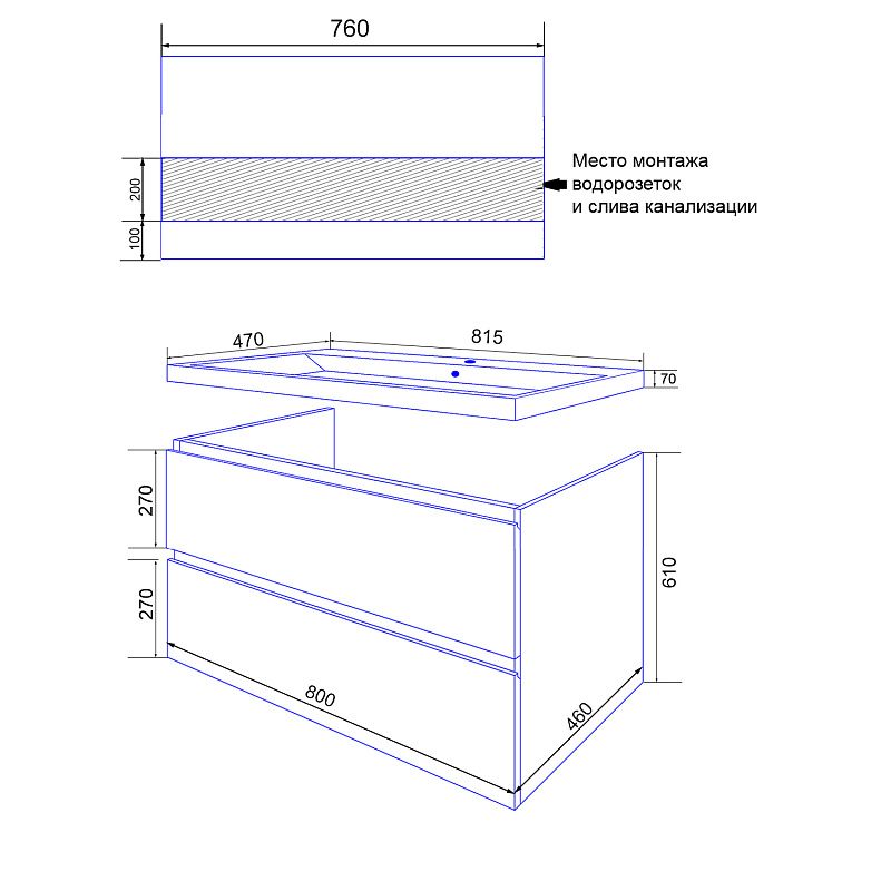 Комплект Тумба Мила 80 (810*670*470) подвесная с раковиной ТЕМПО 80