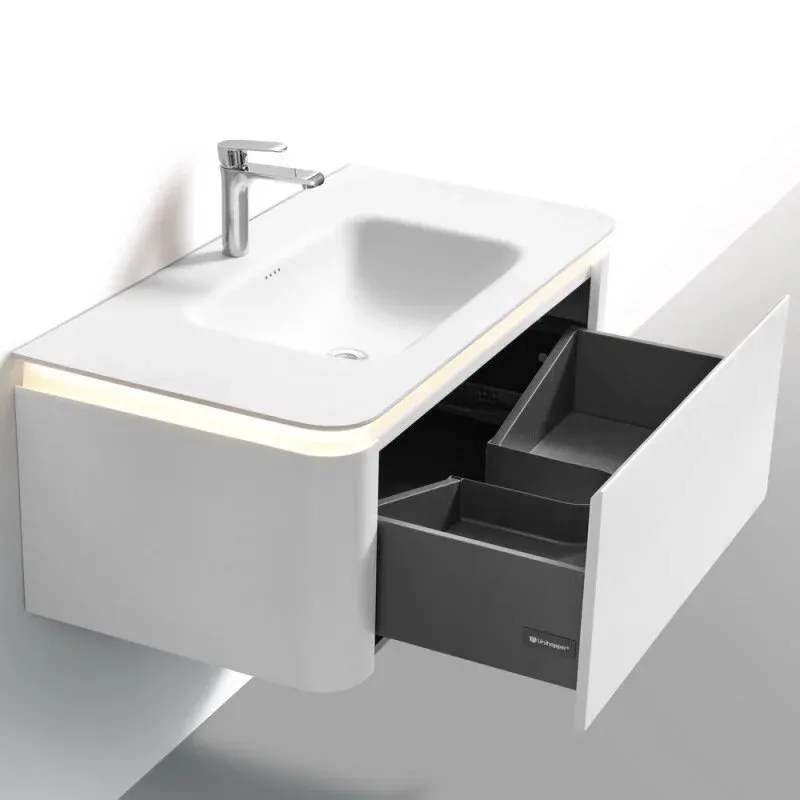 Коллекция U925 представлена в четырех популярных размерах — 800, 900, 1000 и 1200 миллиметров, что позволяет подобрать идеальный вариант для любой ванной комнаты. Раковина из кориана с матовой белой столешницей имеет стильный современный дизайн и отличные эксплуатационные характеристики. Она устойчива к воздействию влаги и механических нагрузок, сохраняя свой первоначальный вид в течение многих лет.