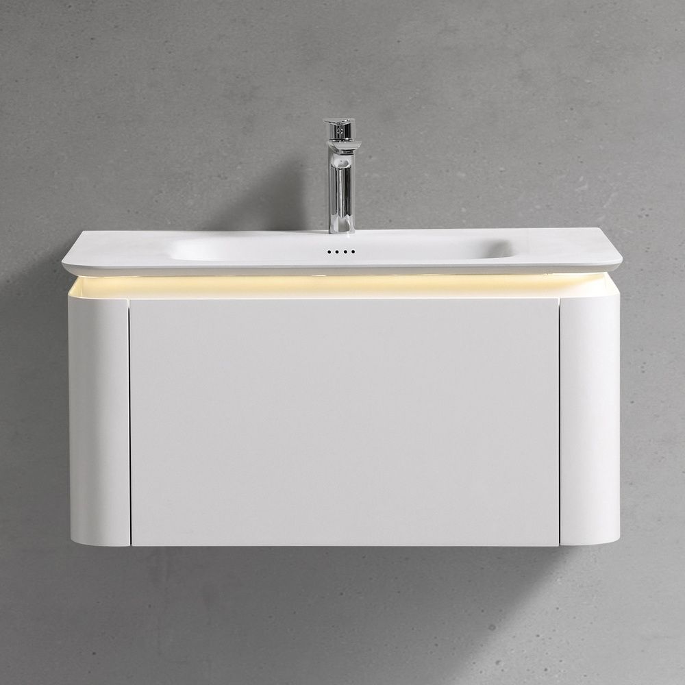 Коллекция U925 представлена в четырех популярных размерах — 700, 800, 900, 1000 и 1200 миллиметров, что позволяет подобрать идеальный вариант для любой ванной комнаты. Раковина из кориана с матовой белой столешницей имеет стильный современный дизайн и отличные эксплуатационные характеристики. Она устойчива к воздействию влаги и механических нагрузок, сохраняя свой первоначальный вид в течение многих лет.