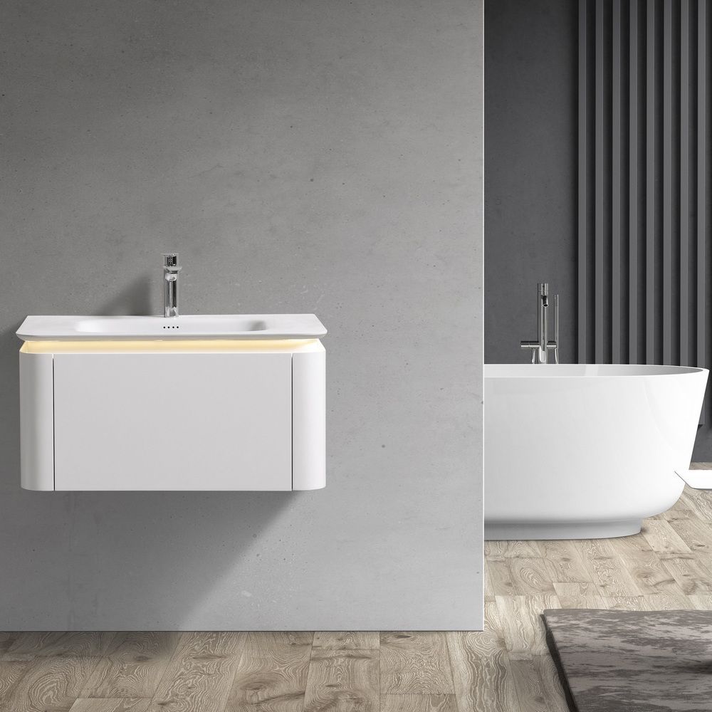 - Цвет тумбы: P01 milk white (матовый молочный белый) – нежный и легкий оттенок, который создаёт атмосферу чистоты и уюта.