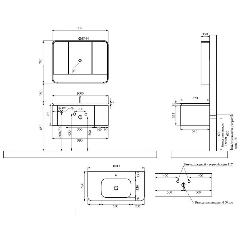 Тумба с раковиной Black&White Universe 9301000 100 см серый купить
