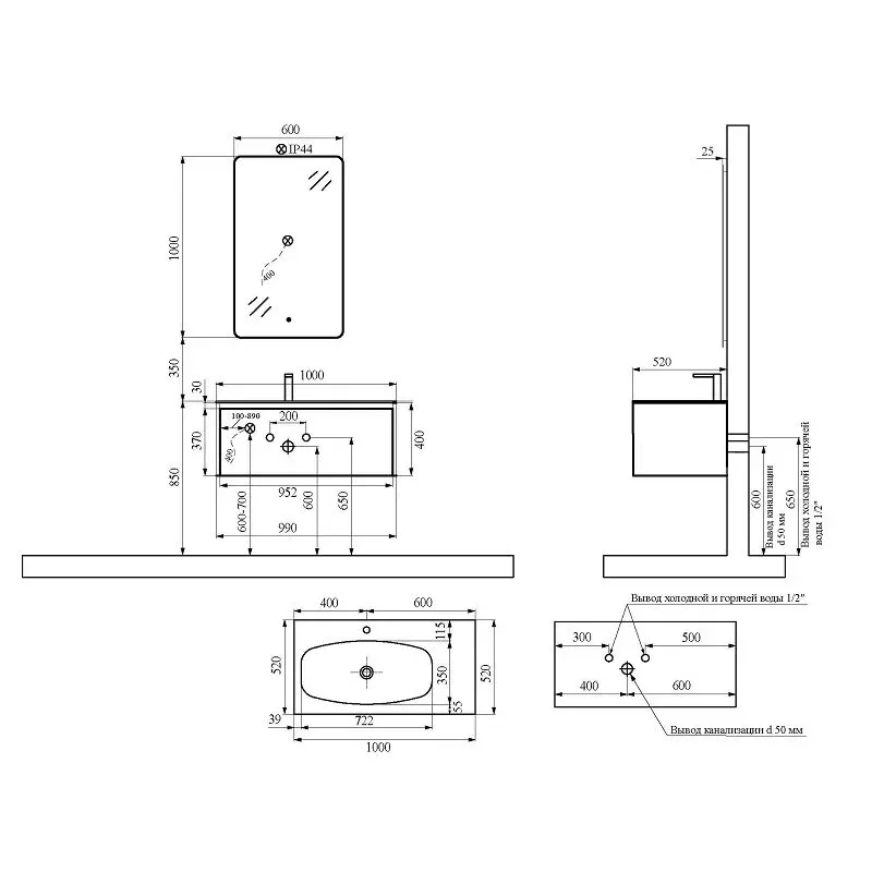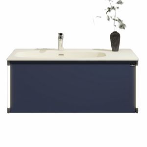 Тумба с раковиной для ванной комнаты датского производителя Black&White в габаритных размерах 100x52x36 см.Раковина – столешница асимметричной конфигурации с широкой чашей и расширенным местом для хранения ванных принадлежностей выполнена из не пористого искусственного камня Corian и оснащена донным клапаном хромированного цвета.Тумба производится из девятислойной фанеры и окрашена влагостойкой эмалью глубокого синего цвета.Зона хранения оснащена одним выдвижным ящиком с высоким фасадом, механизм открывания – UniHopper с доводчиками.Важной особенностью является контурная диодная подсветка, которая расположена справа и слева от фасада, установленная на торцы корпуса.Она включается автоматически при приближении человека с расстояния 3-х метров и гаснет спустя 30 секунд после того, как Вы покинули помещение. U 945 – продукт разработанный датскими дизайнерами, в котором собраны все тенденции актуального мебелестроения для комфортного использования зоны умывания, а также наполнения ванной комнаты комфортом и уютом.