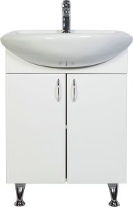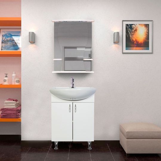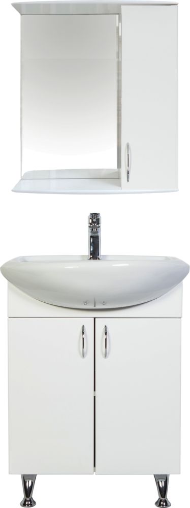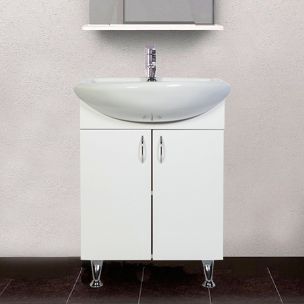 Напольная тумба с раковиной. Дверки c механизмом доводчика, обеспечивающим плавное закрывание. Фасад МДФ в пленке, цвет белый глянец. Корпус ЛДСП - белый глянец. Раковина - фарфор. Фурнитура в цвете хром. В комплекте н-р ножек и внутренняя полочка. Зеркальный шкаф для комплекта (арт. LA-60TUW+RA) приобретается дополнительно.