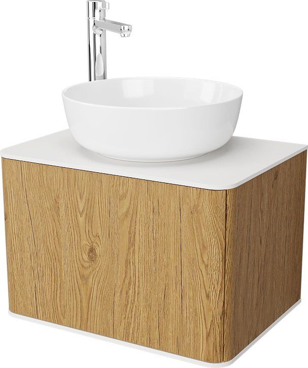Тумба Stworki «Ноттвиль» (60 см) в оттенке светлого дерева поможет создать в ванной комнате легкую, воздушную атмосферу. Модель изготовлена из экологически чистой МДФ, защищенной от влаги, царапин и истирания пленкой Imawell. Лаконичный дизайн без острых углов и лицевой фурнитуры делает ее прекрасным выбором для обустройства небольшого санузла. Вместительный ящик оснащен нажимным механизмом открывания pushto ореn. Благодаря надежным направляющим с доводчиком даже при максимальной нагрузке он перемещается плавно и бесшумно. Рукомойник Stworki Moon 1 хорошо сочетается с плавными очертаниями тумбы. Выполненный из качественного фарфора, он отличается прочностью, долговечностью и простотой в уходе.Тумба для комплекта