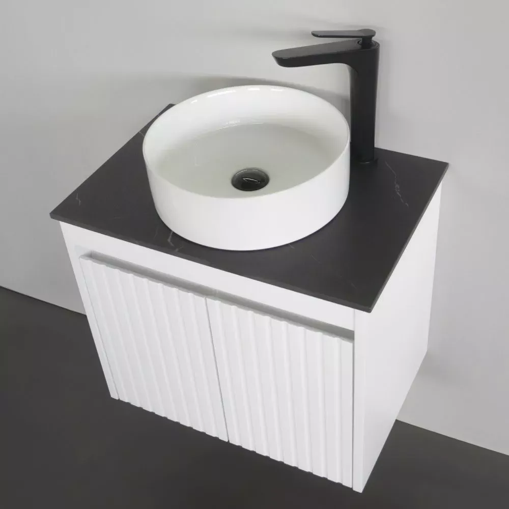 Тумба-умывальник Comforty Двина-60ПД белая матовая со столешницей мрамор Калакатта Блэк с раковиной 9111 купить