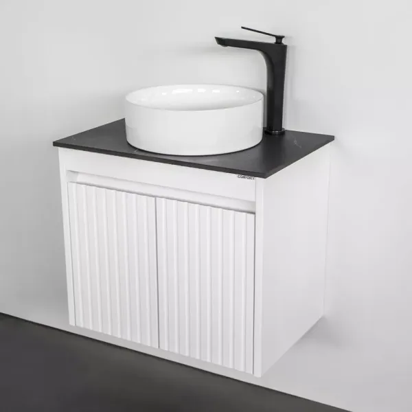 Тумба-умывальник Comforty Двина-60ПД белая матовая со столешницей мрамор Калакатта Блэк с раковиной 9111
