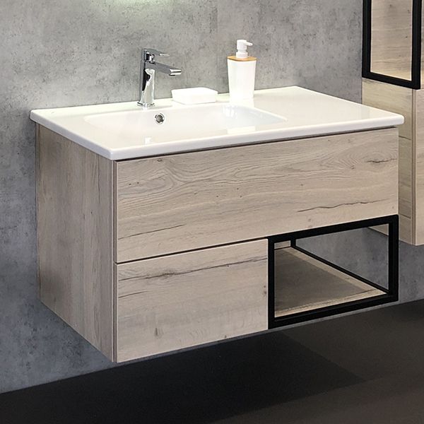 Тумба-умывальник Comforty Мальме 90 дуб дымчатый с раковиной Comforty 9090EL