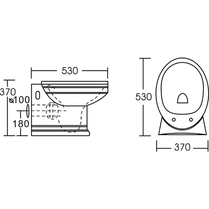 Габариты унитаза (ШхВхД): 37х37х53 см.