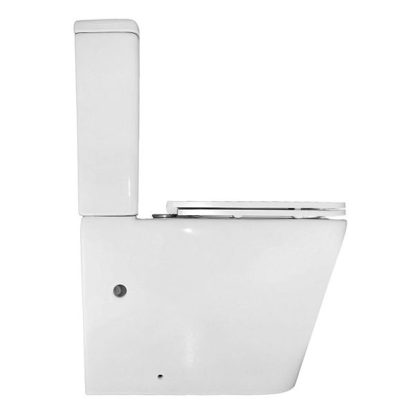 • Безободковая конструкция: Отсутствие ободка обеспечивает максимальную гигиеничность и легкость в уборке, предотвращая скопление бактерий и грязи.