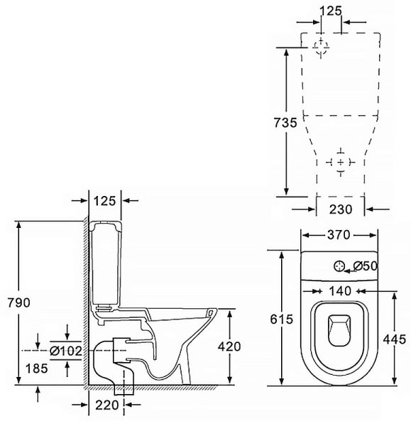Унитаз-компакт Azario Фретта нью 370х615х790 напольный, безободковый в комплекте с бачком и сиденьем дюропласт, микролифт