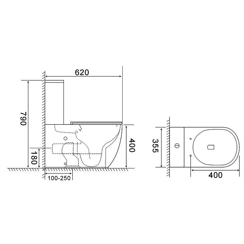 • Габариты 355х620х790 мм делают унитаз-компакт Azario RIANO идеальным выбором для ванных комнат любого размера, позволяя максимально эффективно использовать пространство.