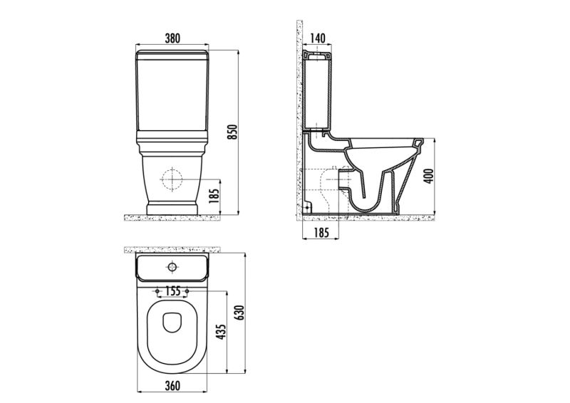 Напольный унитаз-компакт коллекции Creavit Antik изготовлен из экологичного высокопрочного материала - фарфора.